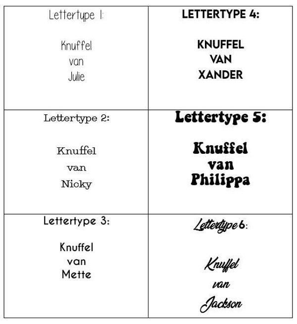 Er is keuze uit 7 kleuren tags met een doorsnede van 25 mm en diverse kleuren cord. Meet de lengte van de nek van de knuffel goed op. Op de pagina "Hoe het werkt" lees je hoe je dit kunt doen.